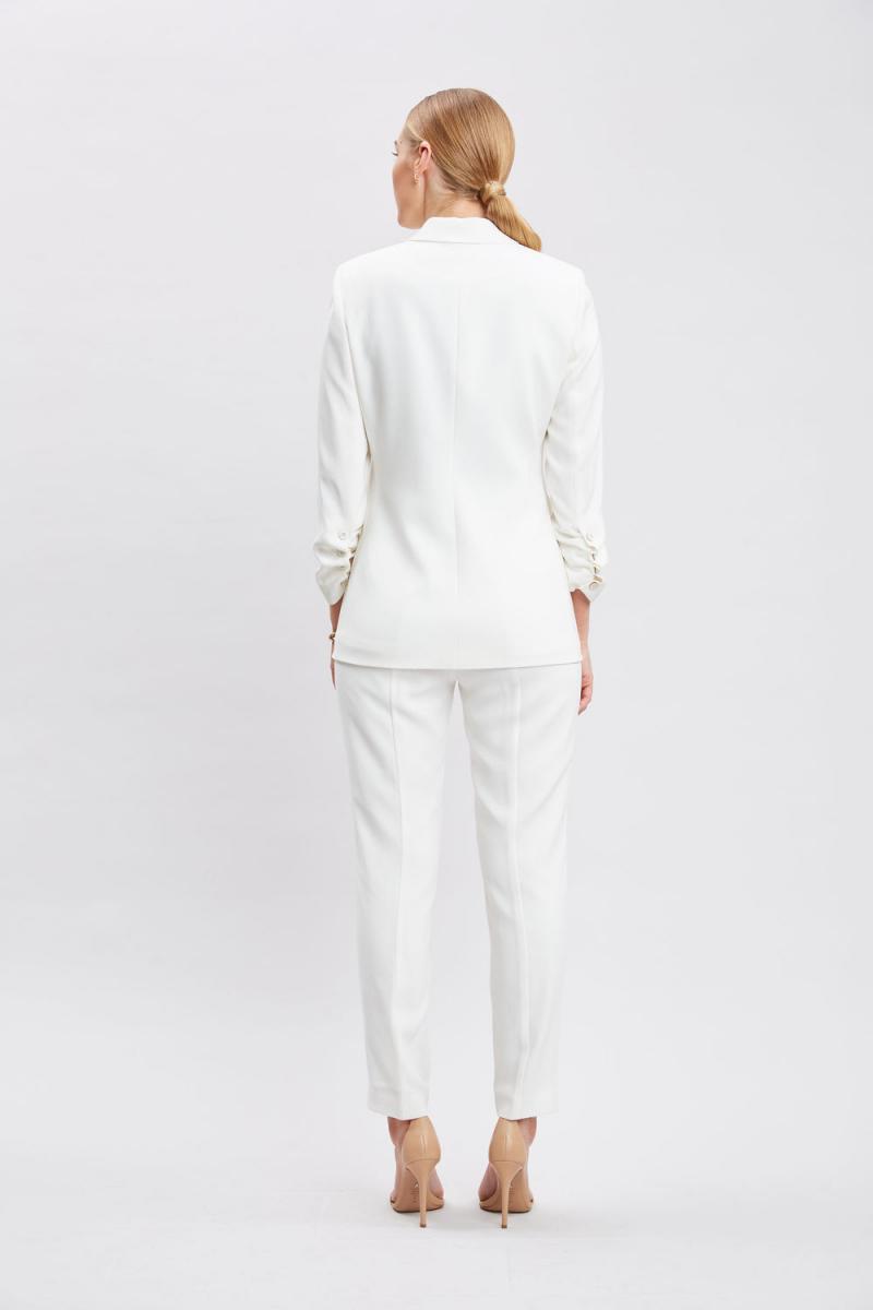 The blazer is reimagined in Elie’s signature fluid crepe with a single button closure and 3/4 ruched sleeves. Pair it with its matching pants for a chic monotone column or mix it up with denim.Product Details